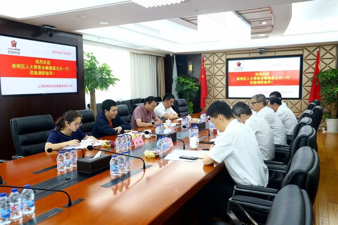 8月30日,崇明區人大常委會副主任、區工商聯主席顧德昌、區經委主任陸建聰、富盛經濟開發區總經理郁蔥一行來集團調研考察。集團董事長葛華、集團黨總支書記秦祖煌、集團總會計師江新彥、鈺翔環保總裁程衛星等接待了顧主任一行。