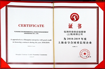 日前,鈺翔控股集團(tuán)旗下鈺翔環(huán)保供應(yīng)鏈管理(上海)有限公司、上海久源經(jīng)貿(mào)發(fā)展有限公司被評(píng)為“2018-2019年度上海市守合同重信用企業(yè)”,并榮獲AAA級(jí)合同信用等級(jí)認(rèn)定。