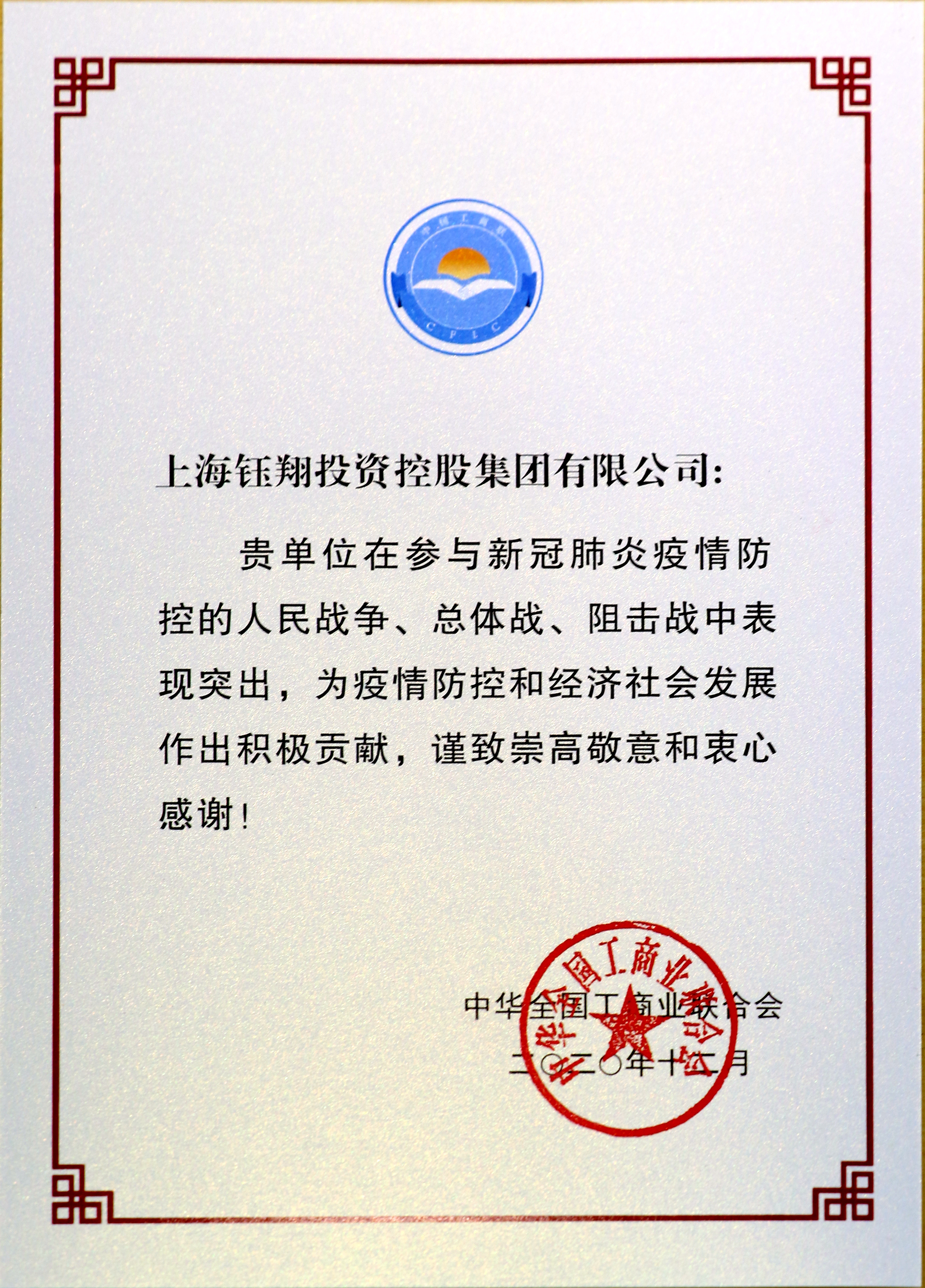 中華全國(guó)工商聯(lián)抗疫先進(jìn)單位感謝信